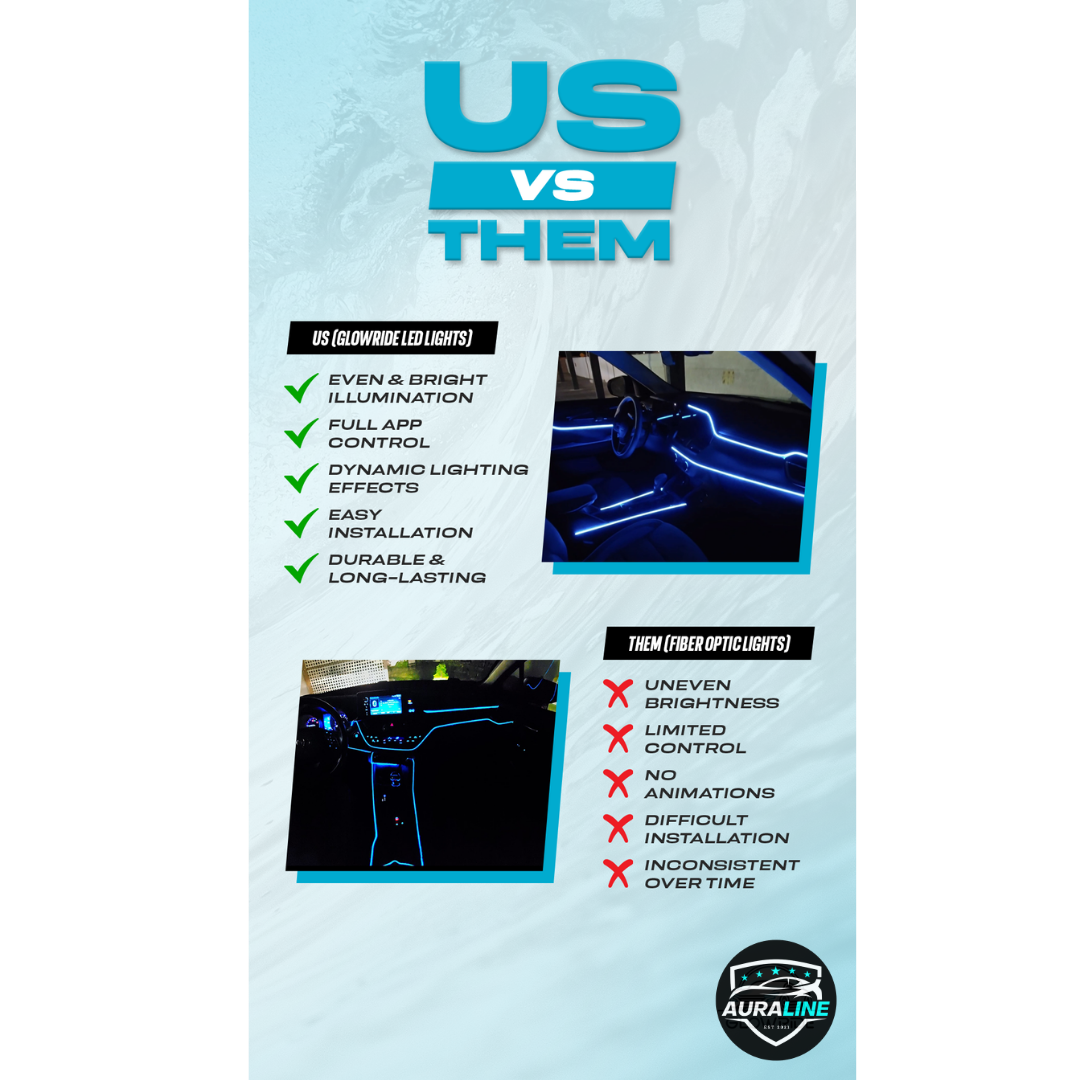 - Complete Car Compatibility: AuraLine™ LED Lights work with any car. Included adapters and strong adhesive tape ensure a seamless fit, no matter the make or model.